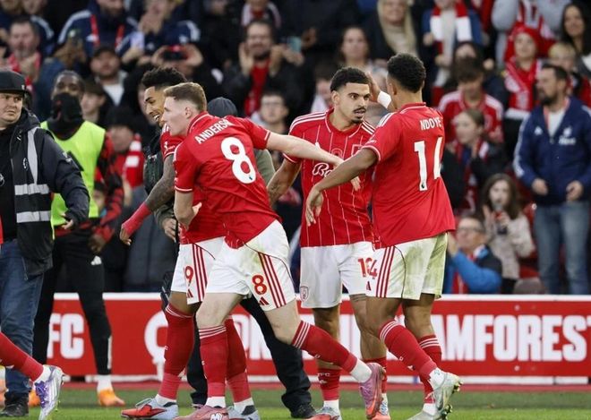 第65分钟,奥多伊左路一对一过掉迪亚洛下底传中,后门柱的伊戈尔-热苏斯近距离头球击中了边网;第67分钟,安德森分球,奥多伊一路奔袭到禁区劲射,皮球是滑门而过;曼联险些再丢一球。在被压制了大半场时间后,终于在第81分钟,姆伯莫角球制导,卡塞米罗摆渡,森林防线勉强解围,迪亚洛弧顶处不等皮球落地直接凌空抽射打进世界波,2:2!